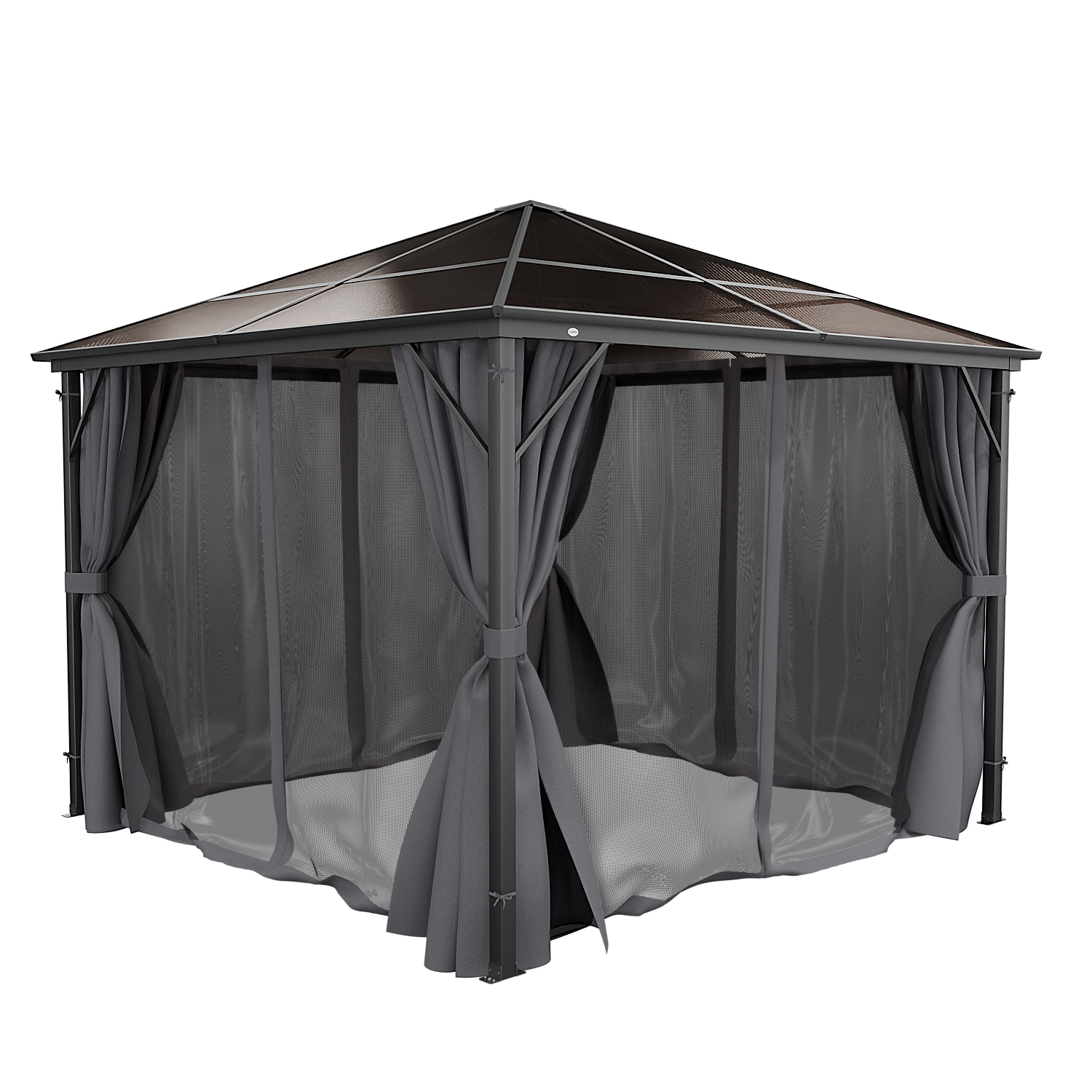 Solider Pavillon mit festem Dach – ideal für Garten, Terrasse und Events Dieser hochwertige Pavillon vereint stabile Konstruktion, modernes Design und praktischen Wetterschutz. Mit seinen Maßen von ca. 3 × 3 m und einer Durchgangshöhe von 2,03 m bietet er viel Platz für gemütliche Stunden im Freien – egal ob beim Familienfest, auf der Terrasse oder im Garten. Das Dach aus 6 mm starken Polycarbonatplatten ist witterungsbeständig, lichtdurchlässig und schützt zuverlässig vor Sonne, Regen und Laub. Durch die leichte Neigung in der Dachform kann Regenwasser seitlich ablaufen – Staunässe wird vermieden. Für eine lange Lebensdauer sorgt die Kombination aus pulverbeschichteten Stahlpfosten (60 mm Stärke) und einem Aluminium-Dachrahmen. Diese robuste Bauweise gewährleistet hohe Stabilität auch bei Wind und Wetter. Die seitlich angebrachten Vorhänge und Moskitonetze lassen sich bei Bedarf per Reißverschluss schließen. So schützt der Pavillon nicht nur vor Sonne, sondern auch vor Insekten und neugierigen Blicken. Alle Stoffelemente bestehen aus wasserabweisendem Polyestergewebe (160 g/m²) in einem eleganten Anthrazit, das sich unauffällig in moderne Gartenkonzepte einfügt. Die offene Gestaltung und das klare Design machen den Pavillon zum stilvollen Mittelpunkt jeder Outdoor-Einrichtung. Er eignet sich ideal als Essbereich, Lounge-Zone oder Überdachung für einen Whirlpool. Fakten auf einen Blick: Maße: ca. 3 × 3 × 2,7 m, Durchgangshöhe ca. 2,03 m Gestell: pulverbeschichteter Stahl (Pfosten), Aluminium (Dachrahmen) Dach: 6 mm starke Polycarbonatplatten Stoffteile: Polyester (160 g/m²), wasserabweisend, mit Reißverschluss Zubehör: inkl. 4 Moskitonetze Der Aufbau erfolgt mithilfe des mitgelieferten Zubehörs. Das durchdachte Stecksystem erleichtert die Montage. Für sicheren Halt auf Rasen, Holz oder Stein empfehlen wir eine feste Verankerung am Boden. Ob als Schattenspender, Regenschutz oder stilvolle Outdoor-Oase – dieser Pavillon mit festem Dach bietet das ganze Jahr über eine funktionale und optisch überzeugende Lösung.