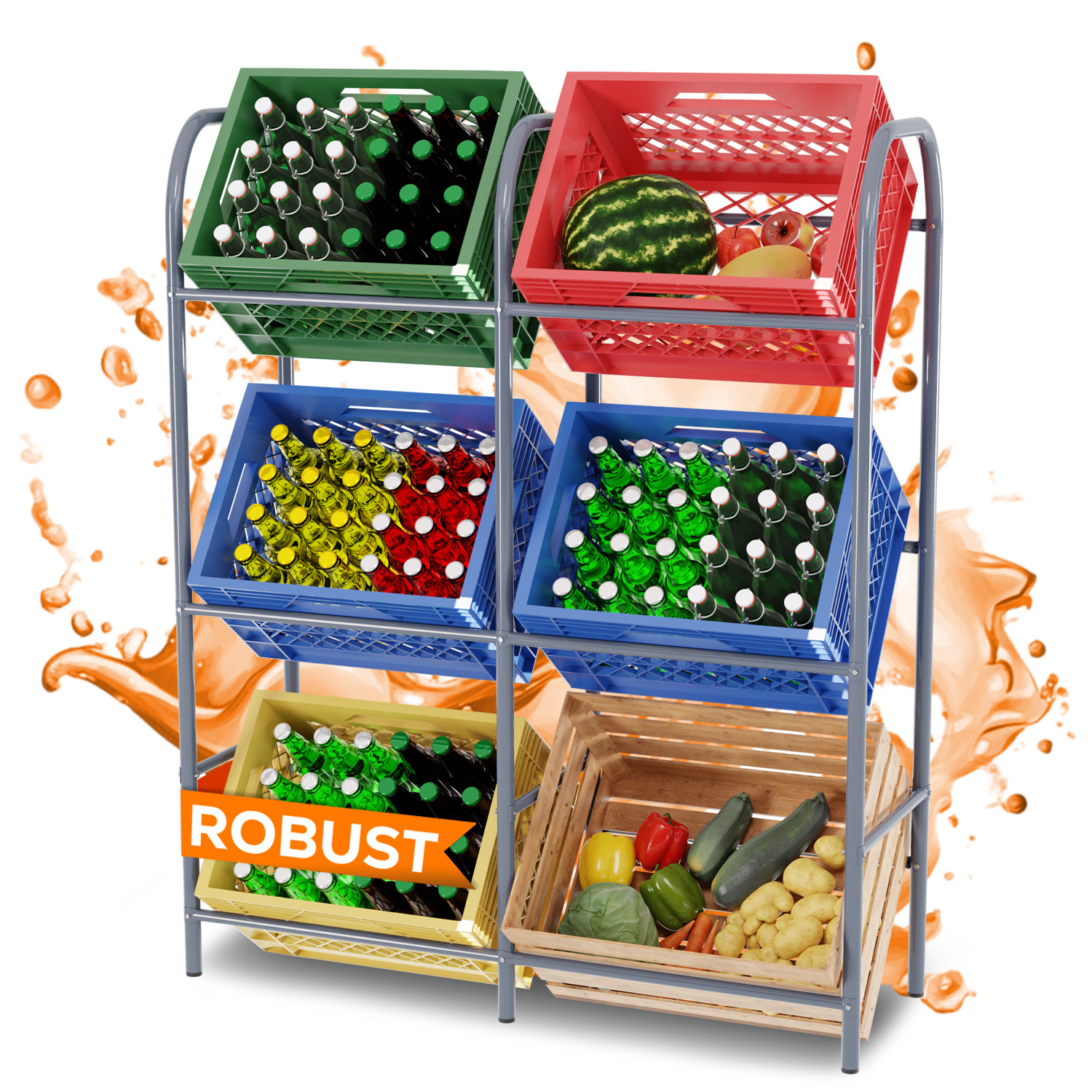 Getränkekistenregal für 6 Kästen – stabile Metallausführung, 96 cm breit, mit Wandhalterung Die Eigenschaften im Überblick: Stabile Konstruktion aus pulverbeschichtetem Metall Flexibel nutzbar – ideal für Küche, Keller, Garage oder Abstellkammer Für bis zu 6 Getränkekisten geeignet Erleichtert die Organisation im Haushalt Platzsparend & mit Wandhalterung zur sicheren Befestigung Rückenfreundlich & durchdacht Leicht geneigte Ablagen für besseren Zugriff auf Flaschen Ergonomische Entnahme ohne Bücken Geeignet auch zur Lagerung von Vorräten, Werkzeug oder Reinigungsmitteln Einfache Montage – nur wenige Schrauben Gesamtbelastung: bis zu 102 kg (17 kg pro Kiste) Technische Daten: Material: Metall, grau pulverbeschichtet Maße (BxTxH): ca. 96 x 34 x 116 cm Fachmaße (je): ca. 45 x 29 x 39 cm Rohrdurchmesser: Seitenteile 2 cm, Querstreben 1,5 cm Lieferumfang: Gestell, Schrauben, Wandhalterung Praktische Lösung für Haushalt und VorratsräumeMit diesem stabilen Getränkekistenregal lagern Sie bis zu 6 Kästen griffbereit und ordentlich. Die robuste Ausführung sorgt für Langlebigkeit, während das durchdachte Design eine bequeme Handhabung im Alltag ermöglicht.