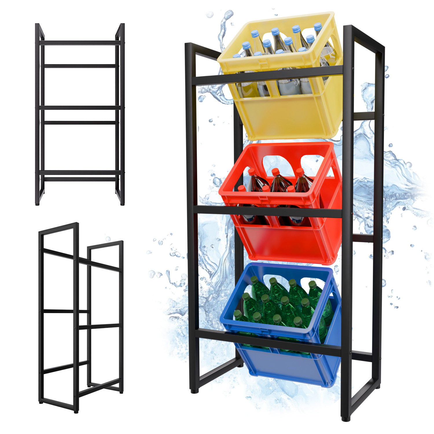 Das Getränkekistenregal ist eine praktische Lösung, um Stauraum zu schaffen und Ordnung in Vorratsräumen, Kellern oder Garagen zu ermöglichen. Hergestellt aus verzinktem Stahl und mit 2,5 cm starken Rohren ausgestattet, bietet es eine robuste Konstruktion, die auch im regelmäßigen Gebrauch belastbar bleibt. Drei Ablageflächen stehen zur Verfügung, von denen jede bis zu 120 kg trägt. Damit lassen sich nicht nur Kisten, sondern auch andere schwere Gegenstände problemlos verstauen. Die Abmessungen von 55 x 32 x 112 cm machen das Regal besonders platzsparend. Es beansprucht nur wenig Stellfläche, schafft aber auf mehreren Ebenen reichlich Stauraum. Ob im Keller für Getränke, im Vorratsraum für Lebensmittel oder in der Garage für Werkstattmaterialien – das Regal passt sich flexibel an unterschiedliche Einsatzorte an. Die schmale Form erleichtert es, auch kleinere Nischen und Ecken sinnvoll auszunutzen. Durch seine vielseitige Nutzbarkeit ist das Regal weit mehr als nur ein Kistenständer. Es eignet sich ebenso für Holzkisten, Aufbewahrungsboxen, Körbe oder andere Behältnisse. So lässt sich ein breites Spektrum an Dingen organisiert unterbringen – von Alltagsartikeln bis hin zu Vorräten und Werkzeug. Alles bleibt übersichtlich verstaut und jederzeit griffbereit. Ein weiterer Vorteil liegt im unkomplizierten Aufbau. Dank Steck- und Schraubsystem ist keine spezielle Ausrüstung erforderlich. Der Aufbau gelingt mit wenigen Handgriffen und kann problemlos auch von einer Person erledigt werden. In kurzer Zeit steht das Regal stabil und einsatzbereit an seinem Platz. Die schwarze Beschichtung verleiht dem Regal nicht nur eine moderne, unauffällige Optik, sondern unterstützt auch den Schutz vor Abnutzung. Zusätzlich erleichtert die leicht geneigte Form der Ablageflächen das Einstellen und Herausnehmen von Kisten oder Boxen. Mit seiner robusten Bauweise, der durchdachten Funktionalität und dem zeitlosen Design ist dieses Regal eine zuverlässige Lösung für mehr Ordnung im Alltag.