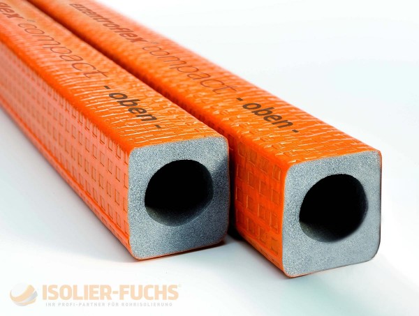 Rohrisolierung aus geschlossenzelligem Schaum auf Basis von Polyethylen mit exzentrischer Rohrführung und robuster Außenhaut für die Isolierung von Heizkörperanschlussleitungen im Fußbodenbereich. EXZENTROFLEX® COMPACT ist mit einer robusten Außenhaut versehen, die den Schaum selbst unter rauen Baustellenbedingungen vor Beschädigungen schützt. Aufgrund seiner niedrigen Wärmeleitfähigkeit reduziert EXZENTROFLEX® COMPACT die Wärmeverluste von Verteilerleitungen einer Sanitär- & Heizungsinstallation um bis zu 80 Prozent. Dies erhöht nicht nur die ökonomische, sondern auch die ökologische Effizienz der gesamten Anlage. EXZENTROFLEX® COMPACT entspricht den Anforderungen nach EnEV Die Aufbauhöhe von EXZENTROFLEX® COMPACT ist im Vergleich zu entsprechenden konzentrischen bzw. halbrunden Rohren signifikant niedriger. Dadurch reduziert sich die Höhe der gesamten Fußbodenkonstruktion, was eine direkte Materialeinsparung im Fußboden von bis zu 35% bedeutet. Die rechteckige und schmale Form fügt sich hervorragend in den Estrichunterbau ein. Dies erhöht die Stabilität der gesamten Fußbodenkonstruktion; Schwachstellen und daraus resultierende Schallbrücken im Estrich werden vermieden und der Trittschallschutz der Bodenkonstruktion bleibt gewährleistet. Das Wichtigste kompakt zusammengefasst: Rohrisolierung aus geschlossenzelligem Polyethylen Schaum Bis zu 35% Materialeinsparung im Fußbodenaufbau Professionelle Dämmung und Energieeinsparung Reduziert die Wärmeverluste um bis zu 80% Trittschallschutz gewährleistet durch stabilen Estrichunterbau entspricht den Anforderungen nach EnEV (nach EN ISO 8497) Brandverhalten: Euroklasse E (EN 13501-1) / DIN 4102 B2 Temperatureinsatzbereich: von 0 °C bis +100 °C (EN 14707) Anwendungsbereich: Isolierung von Heizkörperanschlussleitungen im Fußbodenbereich, gemäß EnEV Isolierstärke / Dämmstärke / Materialstärke 9 mm Liefermenge: 2m (geliefert werden 2 Stangen à 1m) Aufdruck “OBEN” für den richtigen Einbau Farbe: Orange Wichtige Info: Bitte beachten Sie, dass wir aus versandtechnischen Gründen die 2m-Stange in 2 x 1m-Stangen schneiden. Dies hat aber keinen Einfluss auf die Qualität der Ware. Sie erhalten somit 2 Stangen à 1m. Sollten Sie bei einem Artikel Interesse an einer kompletten Verpackungseinheit haben, können wir diese in 2m-Stangen versenden, da in diesem Fall der Transport per Spedition erfolgt.